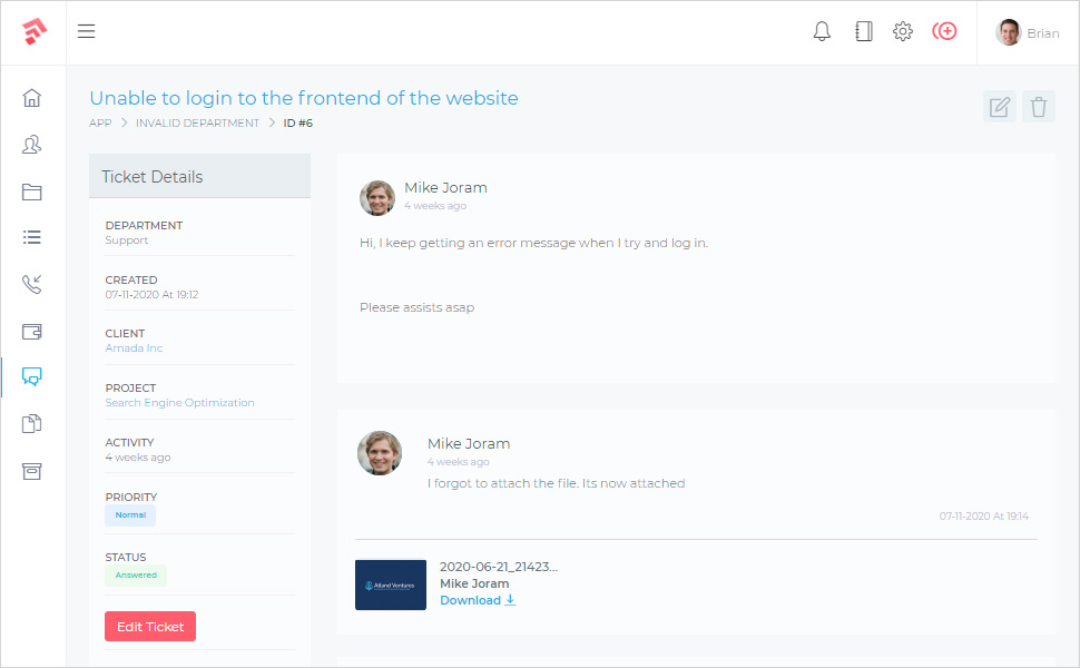 Use the helpdesk to provide support for your clients